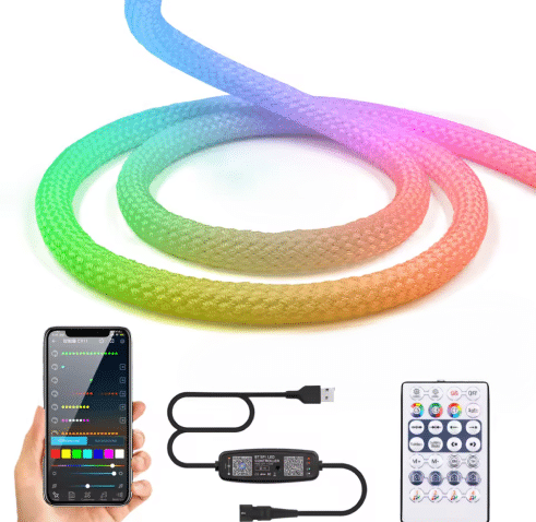 Manguera Neón Cuerda Textil RGBIC 5V USB 5 Metros — IP67 Control APP y Remoto