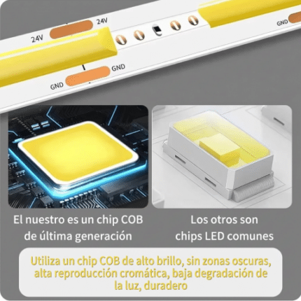 Acceso a cintas de 12V y 24V según la longitud y la potencia que su diseño demande. La variedad en temperaturas de color y densidad de diodos le permite personalizar cada espacio con exactitud.